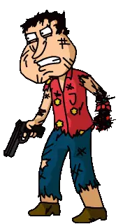 Quagmire from Family Guy is shown being consumed by the glitchy darkness from the Pibby apocalypse, extending a corrupted trail.