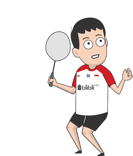 An animated cartoon character, Daru Smash, leaps in the air with a badminton racket, ready to hit a powerful smash shot.