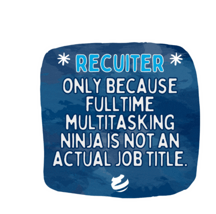 A fun sticker from Darwinrecruitment, humorously stating that 'Recruiter' is the job title because 'Full-Time Multitasking Ninja' isn't.