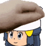 Pokémon character Dawn, in her smol pixel art form, receives a gentle head pat. A cute and endearing animated sticker.