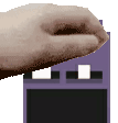 A hand, possibly Dave Miller's or Purple Guy's, reaches for a mysterious purple box, referencing Dayshift at Freddy's.