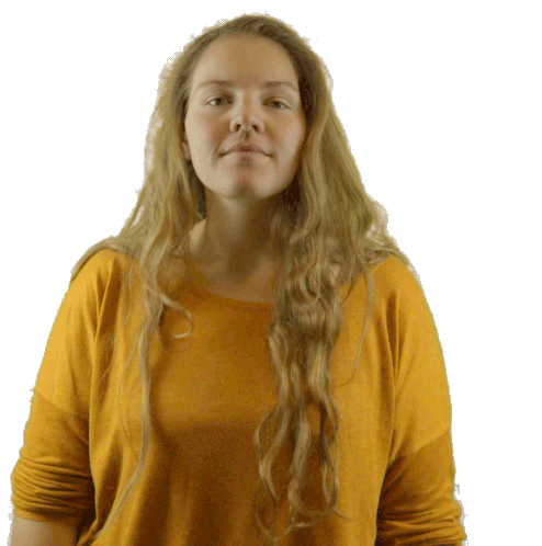 A woman from Deaf Dgj performs a sign language gesture, expressing herself with a clear and engaging movement.