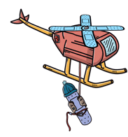 Dede Dedebandaid's helicopter is on a rescue mission, carrying a special package to help and heal.
