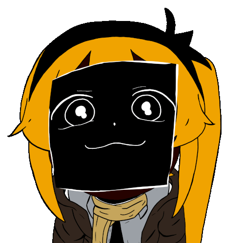 a cartoon girl with a black box on her face