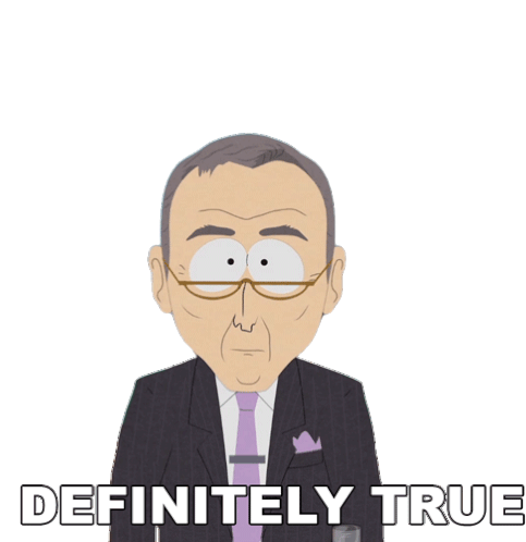 A South Park expert character states 'Definitely True' with conviction. Perfect for agreement.