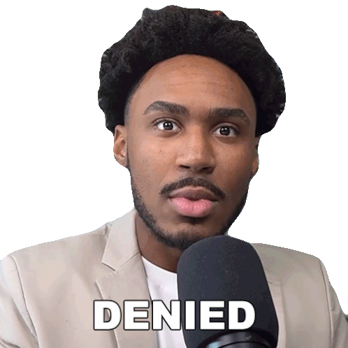 Imurgency reacts with wide eyes and an open mouth as the word "DENIED" appears, expressing disagreement or shock.