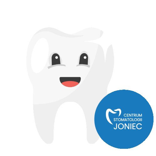 A happy, winking cartoon tooth promotes Centrum Stomatologii Joniec, highlighting dental care and oral health.