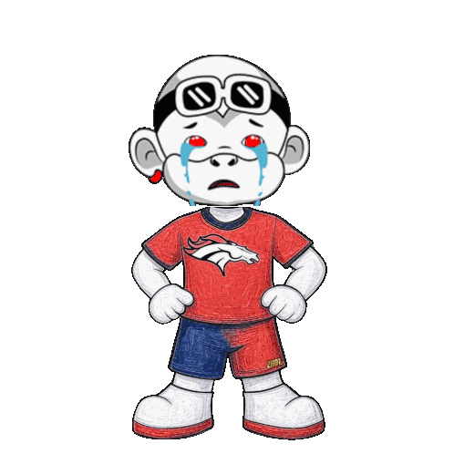 a cartoon character wearing a denver broncos shirt is crying