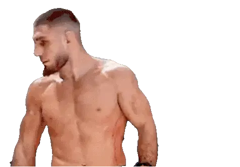 Reinier De Ridder, the MMA fighter, is shown shirtless and flexing his muscles with arms raised.