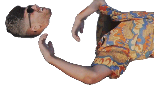 a man in a colorful shirt laying on his back