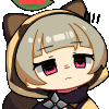 Dfilvtov Sayu, a pixel art girl with cat ears and a leaf, looks bored as a '1' notification appears above her head.