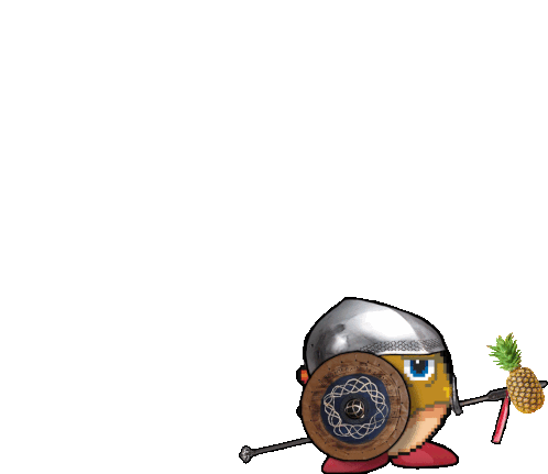 a cartoon character holding a pineapple and a shield
