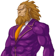 Di-jun Huang and Di-jun Wang in pixel art, a man with a beard in a purple suit and orange tie, subtly breathing.