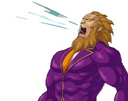 a pixel art of a man with a beard wearing a purple suit and orange tie