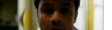 a close up of a man 's face with glowing eyes .