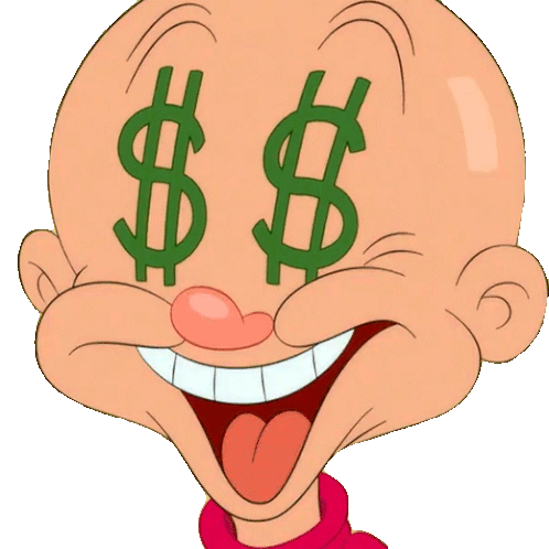 Elmer Fudd animated sticker featuring the character with dollar signs for eyes, a wide smile, and an open mouth, expressing excitement for money.