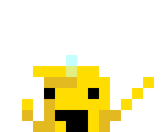A pixel art sticker featuring Dio D Pepe D, a yellow character with a surprised expression and a light blue horn.