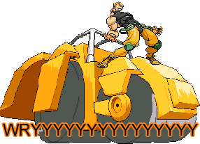 Dio Brando unleashes his iconic Wryyyyyyyyyy battle cry while riding a powerful road roller in this pixel art animation.