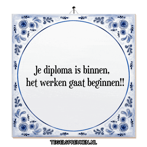 a sign that says je diploma is binnen het werken gaat beginnen