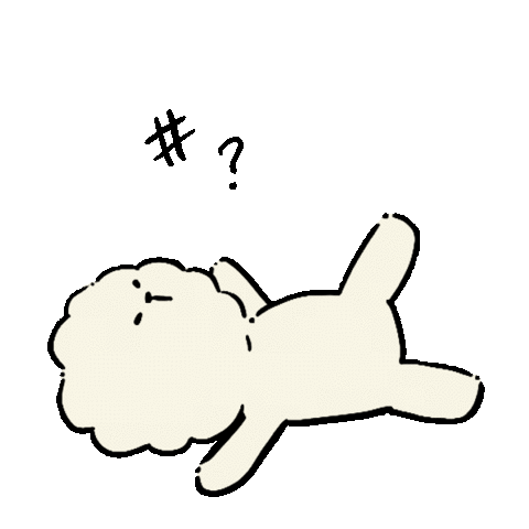 A fluffy, cloud-like creature lies on its side, looking confused and dissatisfied with a question mark and at symbol above its head.