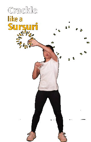A woman performs a lively dance, mimicking a crackling sursuri sparkler, celebrating Diwali with fitness and joy.