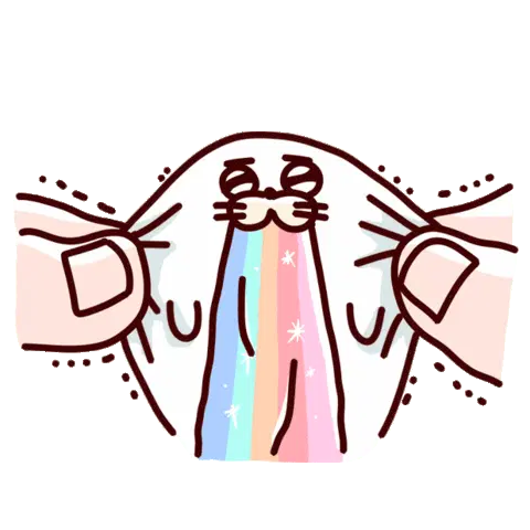 A simple cartoon character with a black haircut and white face vomits green liquid, depicting nausea or disgust.