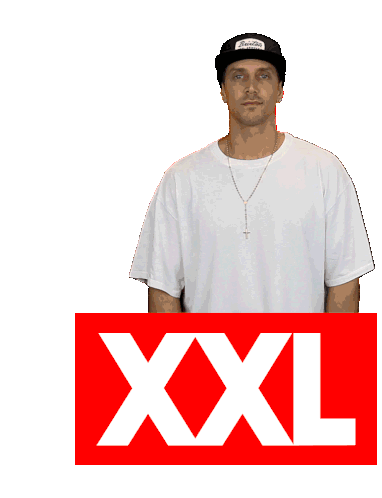 Dj Herca, wearing a white t-shirt and black cap, performs various hand gestures above a prominent XXL logo.