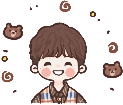 A cute animated cartoon sticker of DKZ's Jonghyeong, featuring his charming smile and floating bear heads.