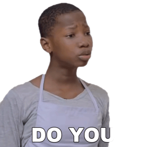 Emanuella, from MarkAngelComedy, asks 'Do you like it?' with a curious expression, as a young boy wearing an apron.