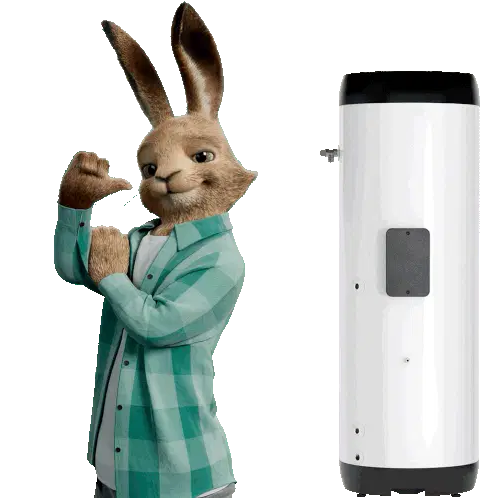 An orange cat stands playfully on the back of a blue cat lying down, showcasing a cute and acrobatic feline moment.