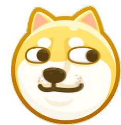 A cute animated Doge Shiba Inu emoji sticker, transitioning from a blank face to a smug expression.