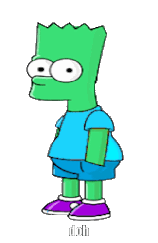 bart simpson is wearing a blue shirt and blue shorts and has purple shoes