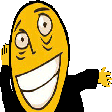 A happy, yellow, cartoon character named Dolboeb with a wide smile waves energetically.