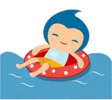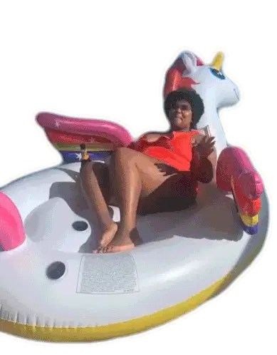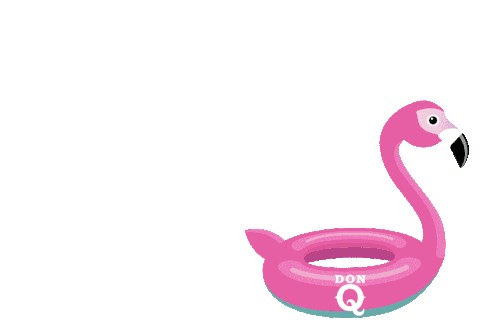A fun animated sticker featuring a pink flamingo floatie with 'DON Q' branding, topped with a pineapple wearing sunglasses.