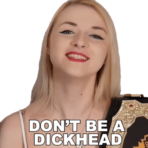 Tearastar, holding a wrestling belt, delivers a direct message: 'Don't be a dickhead.' A bold statement for respectful interaction.