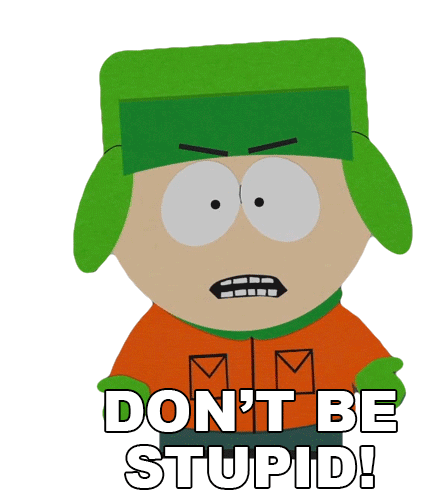 Kyle Broflovski from South Park sternly advises, 'DON'T BE STUPID!' A classic animated sticker for expressing exasperation.