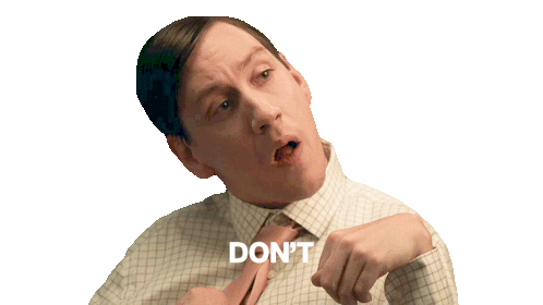Sean Towgood as Ian, wearing a plaid shirt and tie, looks up with a questioning expression and says "Don't".