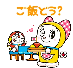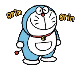 An animated sticker featuring Doraemon and Dora The Kid, with a blurred, pixelated effect.