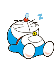 Doraemon the robotic cat is sound asleep, with 'zzz' bubbles floating above him in this cute animated sticker.
