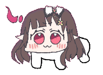 Animated sticker of Doro Dia Chan, a pixel art girl with striking red eyes and a delicate flower in her hair.