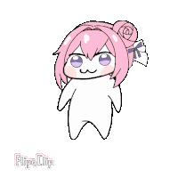Doro Doroflower, a cute pink-haired character with purple eyes, happily holds a small yellow flower.