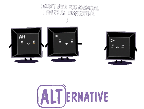A humorous animated sticker featuring an Alt key breaking up with another key, declaring it found an alternative.