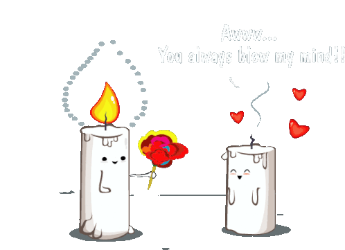 A clever Downsign pun sticker featuring a candle and flower, humorously saying 'You Blow My Mind'.