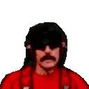Dr Disrespect in his signature red shirt and sunglasses, performing a pixelated desk smash gesture.