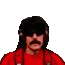 Dr Disrespect, in pixel art, reacts intensely with his signature mustache, sunglasses, and red shirt.