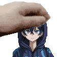 Pixel art sticker from Danganronpa Despair Time (DRDT) featuring a hand gently touching a boy's forehead, by j moreno and j rosales.