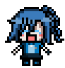 Arei Nageishi from Danganronpa Despair Time, a pixel art girl with blue hair, is depicted crying in this animated sticker.