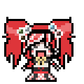 Pixel art sticker of Veronika Grebenshchikova from Danganronpa Despair Time, a happy girl with red hair and flowers.