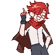 Xander Matthews from DRDT Despair Time in pixel art, striking a pose with a pointing gesture. A cool character sticker.