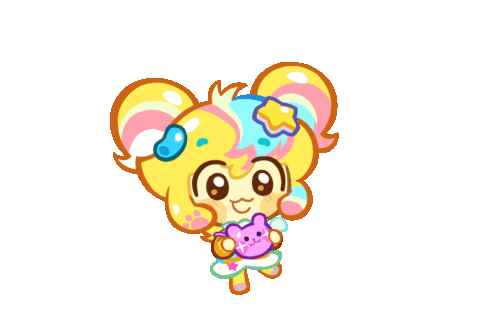a cartoon character holding a stuffed animal with a star on her head